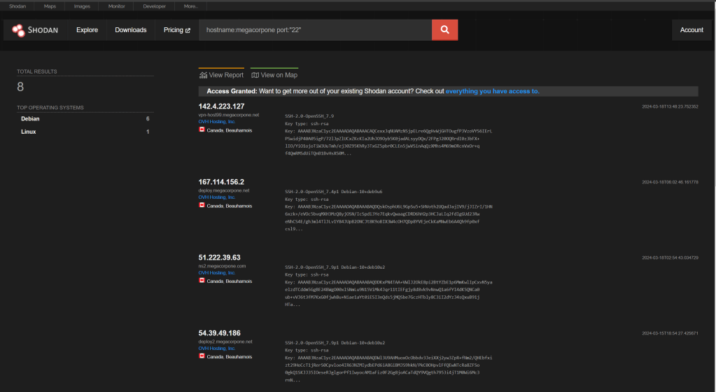 Searching for a hostname and open services:hostname: {DOMAIN_NAME} port:"{PORT_NUMBER}"