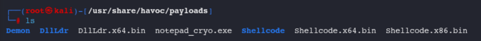 Navigate to the directory where the payload is stored. cd /usr/share/havoc/payloads/