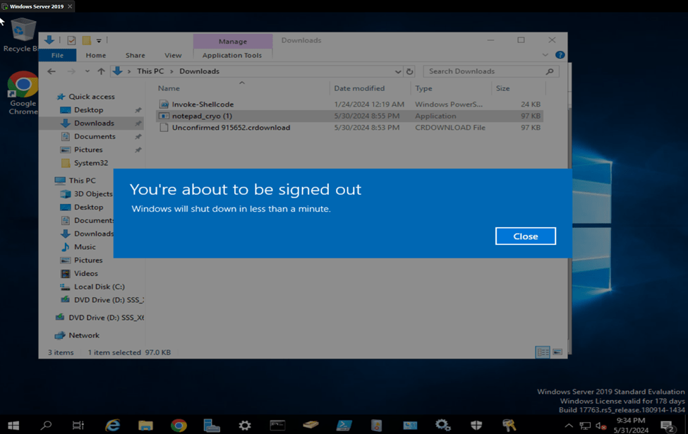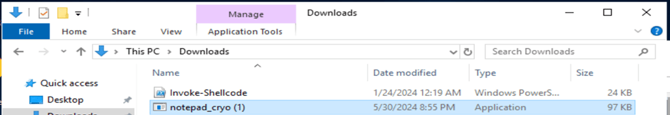 I will set the filename notepad_cryo.exe to easily find this later when checking if the payload successfully ran in the target machine.