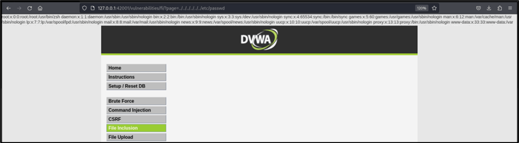 The screenshot below shows that the target page is vulnerable to file inclusion vulnerability, as anyone can traverse to the system files and folders just by using relative paths in the URL.