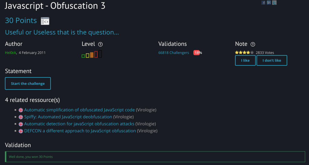 However, after the same string was supplied into Root Me’s validation section for this challenge, it accepted the password. You will get a confirmation like this if successful.