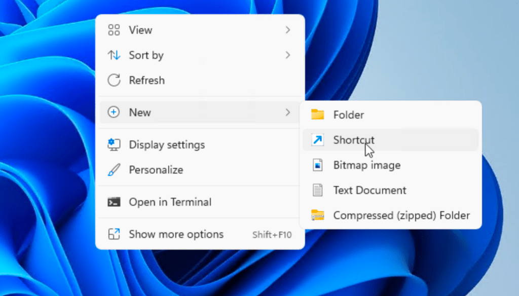 In the desktop of the Windows VM, right-click and select New > Shortcut.