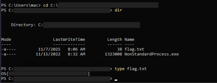 From the result, find a process that is not commonly built-in to a Windows OS, or a process that seems suspicious. Once you find it, go to the directory where it is saved an you will find the flag.