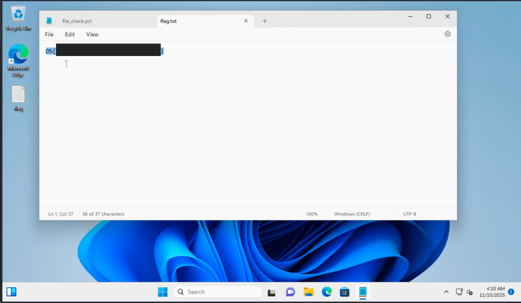 When connected to remote PowerShell, for some reason, directory commands do not work. Therefore, to be able to obtain the flag, I did it through an RDP session.