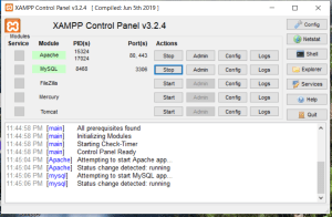 - To test if you have successfully installed your web server, start the Apache and MySQL services. They will be highlighted with green if running correctly. Notice that port numbers are listed as open under the “Port(s)” column. See sample below: