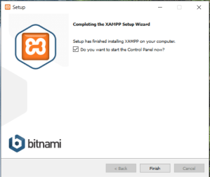 - Upon completing the installation, it will ask if you want to run the Control Panel. It refers to the XAMPP control panel. Tick the box and click the “Finish” button.