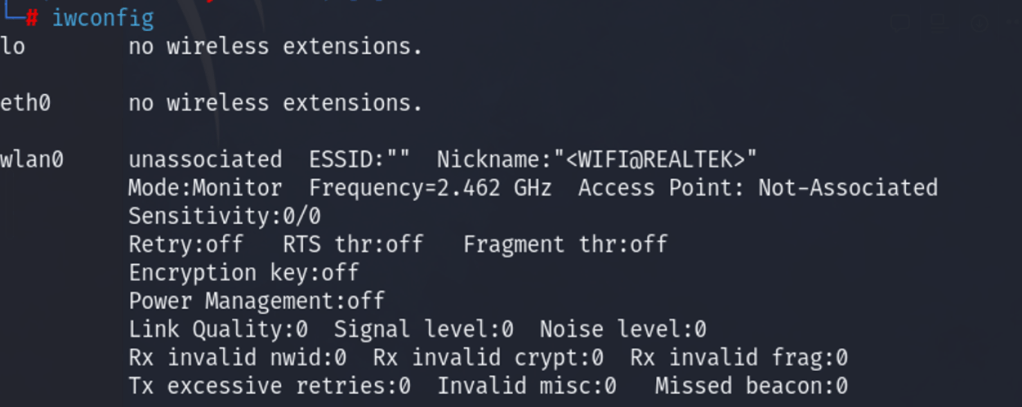 In this example, the name of your wireless adapter interface is wlan0